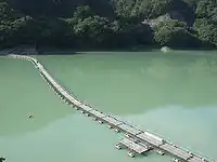 | floating | A bridge whose load is supported by floating on water, rather than resting on fixed supports. Typically a pontoon bridge. |