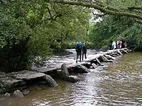 | clapper | Stone bridge made from horizontal slabs resting on vertical slabs or piers. |