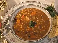 | soup | A meal that is mostly liquid and cooked in a broth | ![]() | |