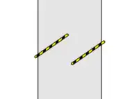 Tilted vertically arranged barrier elements that allow a rather narrow passage. Defining feature is a tilted barrier. Typically narrower than single, and greater barrier but it is possible that very narrow single will block passage in the same way[1]. Called "A-frame"[2] or "K-frame"[3] Originally used squeeze[4] |