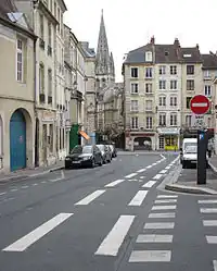 Cycleway infrastructure on the left side of the road, referring to the way direction.