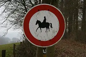 =no - ↑ The Vienna Convention on Road Signs and Signals uses the term "riders on horseback"