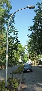 | bent_mast | A pole that starts out straight but then bends to "reach" over the street. The lower straight part of the pole may help with vehicle clearance of the lamp. | ||||