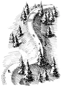 Esker; A narrow, sinuous, steep-sided ridge composed of sand or gravel deposited by a glacial stream. |