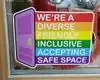 Location which has some verifiable indication that LGBTQ+ people are welcome. Examples of signage may include stickers, flags, posted messages, or statements on the feature's website.