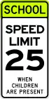 Lower speed limit when children are present (used around some schools) |