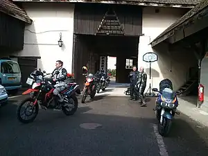 | Enclosed parking (courtyard or similar) (motorcycle:parking= enclosed_area)