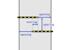 barrier=cycle_barrier- A barrier along a path that slows or prevents access for bicycle usersspacing=*- Minimum distance between the grids of chicane shaped barriers like cycle barriersoverlap=*- Overlap distance of the barrier elements on multi-stage/chicane shaped barriers like cycle barriersmaxwidth:physical=*- The maximum width in metreswidth=*- The width of a feature