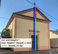 Don't forget that roof:height is a part of the total building height. For example a building might be 5 meters tall with tag height=5 and have a roof:height of 2 meters with tag =2. This would describe a building with a 3m façade and a 2m roof, totalling 5m from ground to the tallest part of the roof.