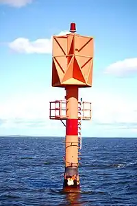 | Radar reflector at buoys or beacons. |