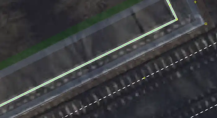 Tactile paving in JOSM, shown as a white band around the way.
