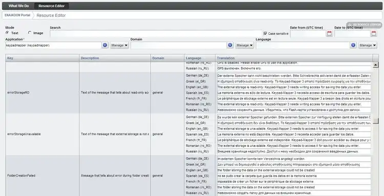 All text resources and graphics resources used by the app are maintained in the ENAiKOON resource editor.