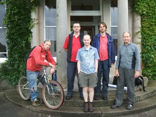 Team on the steps of Brathay Hall, our planning venue each day (Ben, Andy, Rob, Nick and Neville)