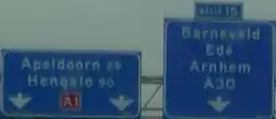 - The OSM way of the slip road. The signpost above the motorway indicates that the road ahead is referred to as A30 and is leading to Barneveld, Ede and Arnhem.