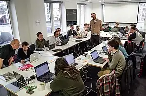 - Andy Allan gave a workshop on using TileMill, and a few people got started and had a play with it. Henk and JennyH. Dan Stowell probably got the furthest and got openstreetmap-carto up and running. Dan even foolishly attempted to fix a rendering issue with layer ordering [1].