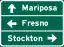 | G8-16 | Destination & Street Name with Arrow | destination=Mariposa aheaddestination=Fresno on the cross street to the leftdestination=Stockton on the cross street to the right
