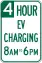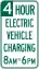 | R114 | __Hour EV Charging – __AM to __PM | amenity=charging_station maxstay=4 hours opening_hours=08:00-18:00parking:restriction:conditional=charging_only @ (08:00-18:00) parking:maxstay:conditional=4 hours @ (08:00-18:00) on the roadwayor amenity=parking_space parking_space=charging maxstay=4 hours opening_hours=08:00-18:00 on the individual stall