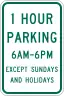 R7-11 | 1 Hour Parking 6AM-6PM Except Sundays and Holidays | ||
