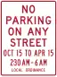R7-13b | No Parking on Any Street Dates and Times Local Ordinance | ||
