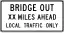 | R11-3b | Bridge Out – Local Traffic Only | motor_vehicle=destination for XX milesdestroyed:man_made=bridgedestroyed:highway=* destroyed:bridge=yes after that