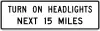 | R16-7 | Turn On Headlights Next XX Miles | headlight=required for XX miles