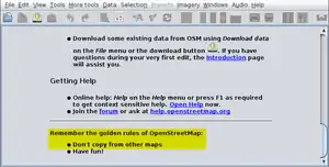 The OpenStreetMap community would love to avoid any copyright violations. This should be a kind reminder why OpenStreetMap contributors may not freely copy things from copyrighted maps. The maps are free as in someone's buying you food for lunch, but not as free as in freedom. Also, this piece of opinion further describes the reasons why we should not simply copy things.