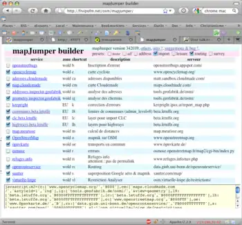 - bug on mapJumperBuilder : not building correct code. corrected error in mapjumper.js, bad search string. FrViPofm 12:54, 19 January 2010 (UTC)