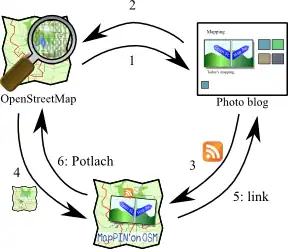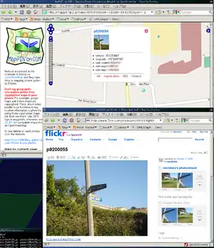 MapPIN'on OSM(http://mappin.hp2.jp/ ) is "Mapping Photo Introducing Network on OpenStreetMap". The website provides index of locations of geotagged photos and shows them on OpenStreetMap. This web server itself doesn't hold any photos. Those photos shown on the map are published somewhere in Internet and they are just linked to "MapPIN'on OSM" by RSSes which the photo's authors provided. So to speak, MapPIN'on OSM is a kind of RSS reader. The real aim of this projects is exciting remote mapping. The site owner is one of OSM contributors, Nazotoko. Now the state is beta released (test and correction state). The data itself is stable. Anyone can join it.