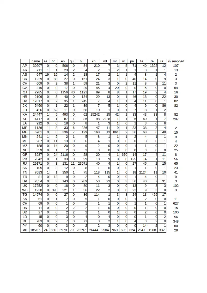 | as | bn | doi | en | fr | gom | gu | hi | kfa | kn | lus | ml | mai | mni | mr | ne | or | pa | sa | sat | ta | tcy | te | trp | ur | other | |||