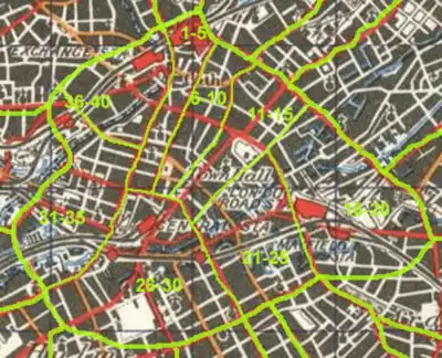 • The inner ring is the central area, which will be very busy on Saturday. It is suggested that the roads/streets in this area be mapped on Sunday morning when the heads are bleary and there is less danger therefore of being hit by a parked bus ;-)