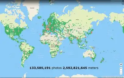 Mapillary (mapillary.com) is a service for sharing geotagged photos developed by a Swedish startup, that was sold to Facebook in June 2020. [3] [4] Its creators want to represent the whole world (not only streets) with photos [5][6]. They believe that for covering all interesting places in the world, there needs to be an independent, crowdsourced project and a systematic approach to cover interesting areas. Services like Google, having especially equipped cars with camera mounts, are not going to be able to cover the world in sufficient detail [5]. According to them, the local knowledge is almost unbeatable, and people know what really matters in capturing a photo [5]. They are interested in coverage of any outdoor place and this can contribute to a system that represents the world with high level of detail [4]. Most of the "intelligence" of image processing is done on the server side using Big data technologies and computer vision, making the data collection super simple for the user. As a result, Mapillary will improve with each new photo, since all new photos are related to any existing photos in the vicinity. Here is a short presentation [7] for a brief technical overview. The idea is that the users of the data are empowered to increase coverage in areas that interest them [5]. The developers of Mapillary believe there is a place in the market for a provider of neutral and independent pictures [5][6]