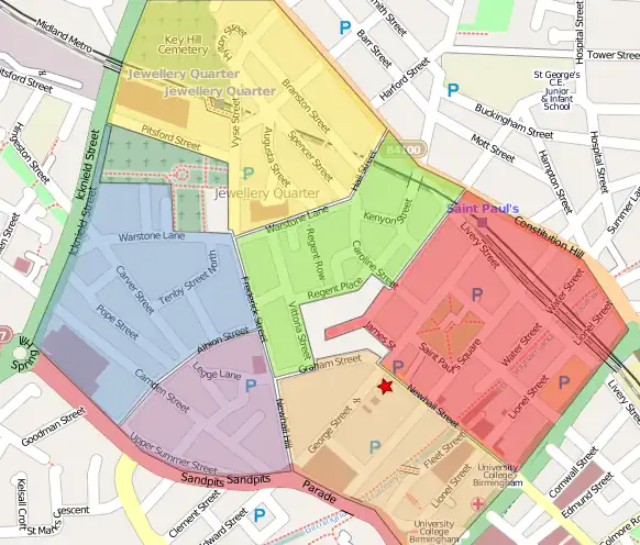 The Midlands User Group (Mappa Mercia) meets on the first Thursday of the month somewhere in the centre of Birmingham. At the April meeting we decided to combine the social with some mapping during the summer months. The idea is to meet every month in a different pub somewhere in the city centre and start the evening with mapping addresses, turn restrictions and other POIs in the area around the pub for an hour. By the end of the summer will then hopefully have collected complete address information and turn restrictions for the area within the inner ringroad.