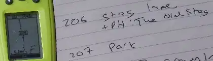 GPS receivers make it very easy to mark waypoints. On the Geko for example, "Mark", "OK" will insert a numbered waypoint. In the example shown, the cartographer stopped in a pub car park, and marked a waypoint which was stored as number 206. Some GPS models allow you take an 'average' point. This will take multiple GPS points and then average all the points, in theory creating a more accurate waypoint. Usually this is used when accuracy is higher priority with the data collection and time isn't as much as a factor but this can still be done quickly.