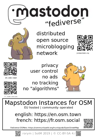 Flyer distributed at State of the Map 2019 at Heidelberg, and based on the flyer at State of the Map 2018 in Milan