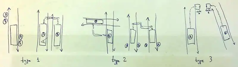 - Third type requires you to leave a metro station to enter another one. It can take five minutes or more to switch lines, and you would need to use on-the-ground pedestrian routing to find another entrance. This is not unlike moving between stations of the same line by leaving at one and entering at another. The line between type 2 and type 3 is blurred: please use your judgment and official maps.