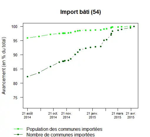 Les bâtiments des 594 communes ont été importés (28 avril 2015)