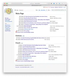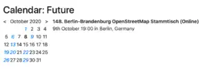 The third part of my work is the integration into the wiki. People mostly look at the start page of the wiki to find out about events, but as long as there is no automatic connection between OSMCAL and the wiki, it puts an additional burden on organizers: They’d need to put their event in two places.