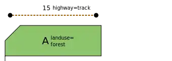 • The numbers and letters in the figures are followed by the tags for the object (way or area) to make the figures rather self-explanatory.