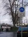 Een bord G11 met de extra aanduiding 'fietsstraat', en een onderbord voor toegestane categorieën. Een dergelijke fietsstraat is juridisch gezien een fietspad met uitzonderingen voor toegelaten gebruik zoals aangegeven op het onderbord.