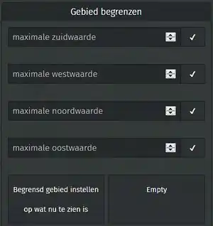 Eenvoudiger is om dit met de knop Begrensd gebied instellen op wat nu te zien is in te vullen.