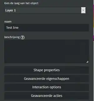 - Geavanceerde acties: Toont mogelijkheid om de lijn weg te verwijderen en om de lijn om te zetten naar een polygoon.