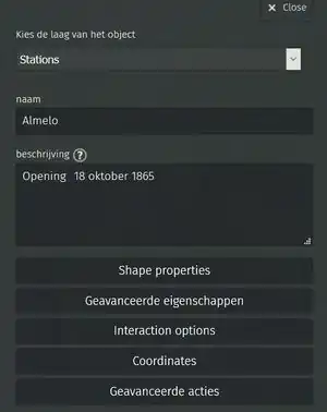 - Coordinates: De coördinaten kunnen handmatig aangepast worden