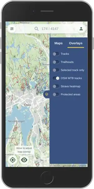 | iOS | MTBMap Nordic | Kart-app spesialdesignet for å vise MTBMap.no i både iOS og Android, lansert i 2020 av Bror Brurberg. Omtalt bl.a. her av utvikleren selv, og på terrengsykkel.no ifbm. utvidelsen til en nordisk versjon (pr. mai 2024 kun i iOS-versjonen). Lagrer kartfliser lokalt på telefonen, så ved å kikke gjennom et område før avreise kan du klare deg en stund uten dekning. Har også selve stiene lagret lokalt og kan vise dem på toppen av Apple sine satelittbilder som også kan "caches" lokalt hvis man f.eks. zoomer inn i området før man drar hjemmefra. | |