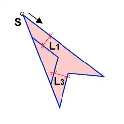 The starting point S where the outline begins, and the direction of the building outline, determine how the roof is interpreted in 3D: