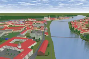 OSM2World needs a Java Runtime Environment (JRE) in version 17 or newer (older OSM2World releases require JRE 8). Once you have Java set up, go to osm2world.org/download and get the zip archive with the compiled program. Extract it somewhere on your computer.