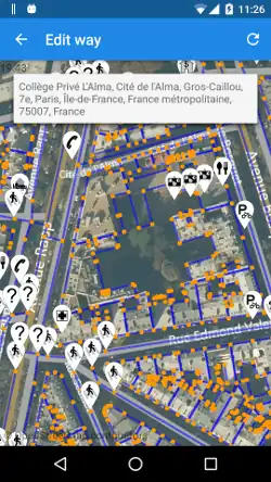 OSM Contributor mapping tool. Latest material design by the jawg team, add/edit/delete features for Nodes/Ways/Comments. Can also be used with pre-entered types for mapping parties (https://www.jawg.io)