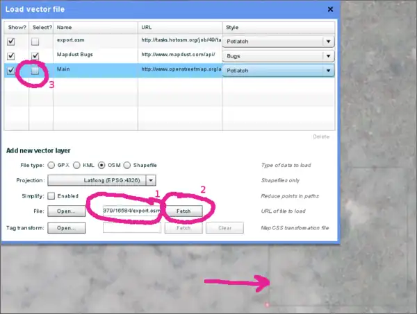 6. In the Load Vector File window, at the bottom next to File, click Open, and navigate to the .gpx file you just downloaded