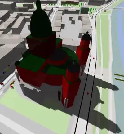 OSM2WORD and other 3D-viewer seems to have a lot models. How do the do that? What about Google Scetchup? I will try to get and dynamically convert all the models. But I am sure there is a copyright prohibiting a use. How to place: The models should be in the right scale and direction. The Server should know the exact position to place them. So we only need a tag for the server/service and the model name/id. This tag has to be added to the building(s) the model replaces. Now the renderer can make them invisible. Watch it at the London Eye. Well, there is a third model but you will have to discover it somehow :) And yes, shadows do also work for models.