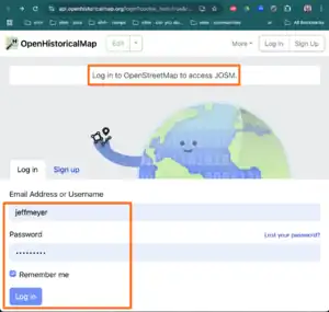 JOSM[1] is a more advanced alternative to iD, especially useful for large-scale tasks like imports and mapping international boundaries. OpenHistoricalMap uses the same official distribution of JOSM that OSM contributors use. Before you can contribute to OHM using JOSM, you need to adjust several configuration settings away from the OSM defaults.