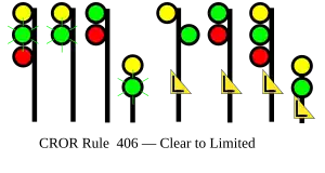 | 406 | Clear to Limited | Proceed, approaching next signal at LIMITED speed |